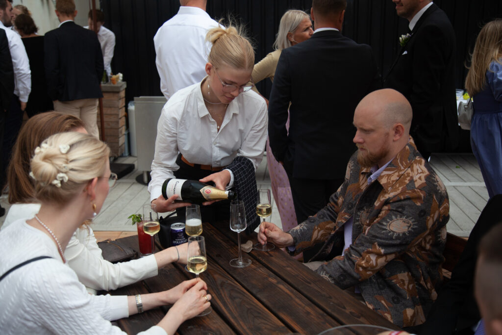 Til bryllupper er det meget almindeligt at tjenervagter starter til receptionen om eftermiddagen og strækker sig til langt ud på natten.